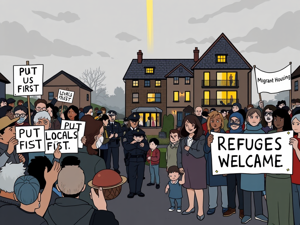 Videos circulating online show residents waving placards reading “Put locals first” while others shout “Refugees welcome here.” Between them, police try to keep the peace. But this isn’t just a traffic disruption—it’s a symptom of deeper tensions in our society.